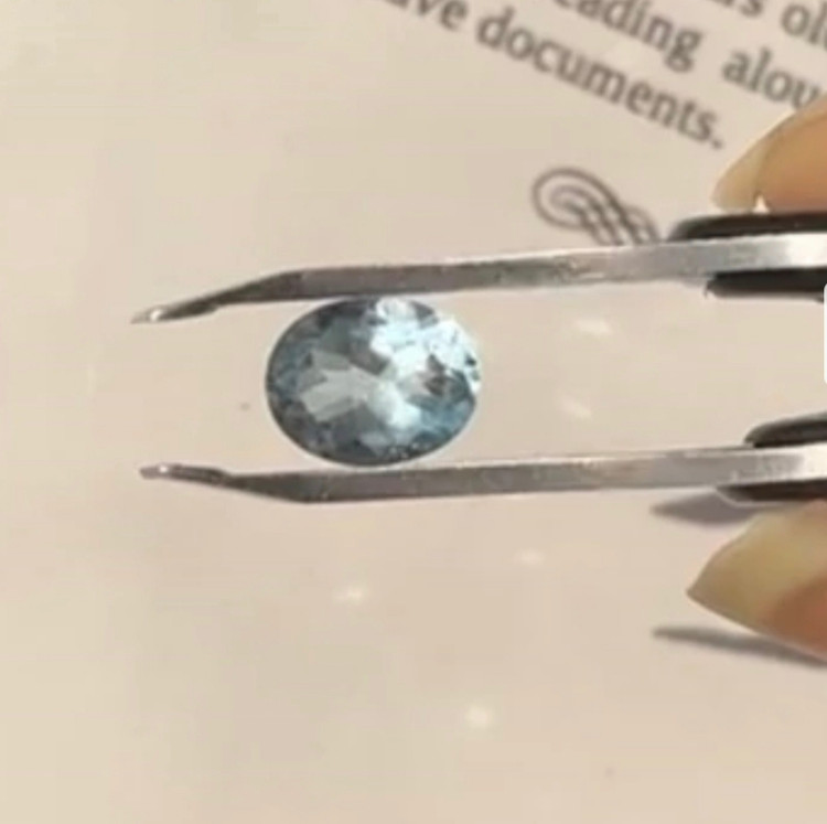 نگین توپاز آبی سوییس تراش جواهری بیضی 3.3قیراط سنگ اصل طبیعی