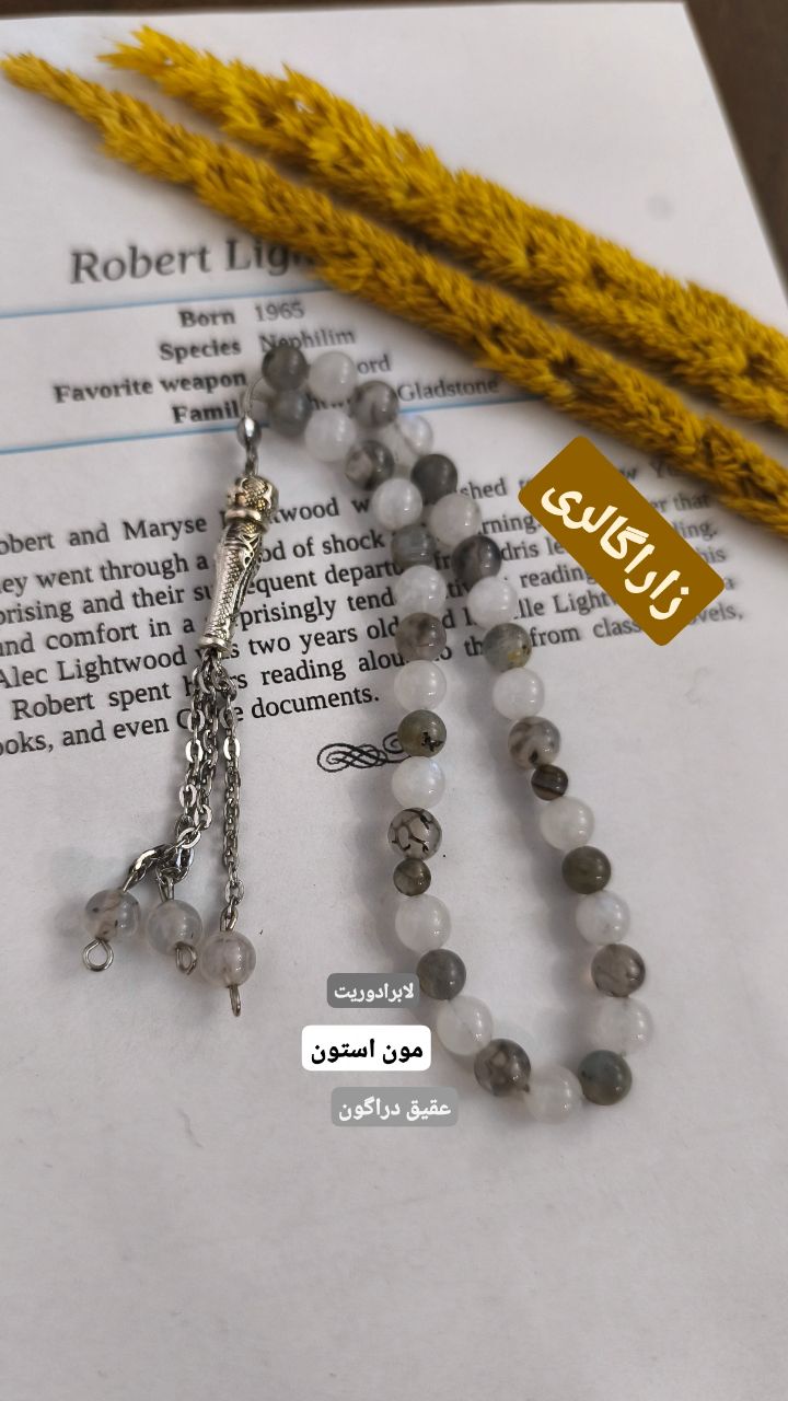 تسبیح سنگ مون استون لابرادوریت عقیق دراگون سایز سنگ 6میل سنگ اصل طبیعی