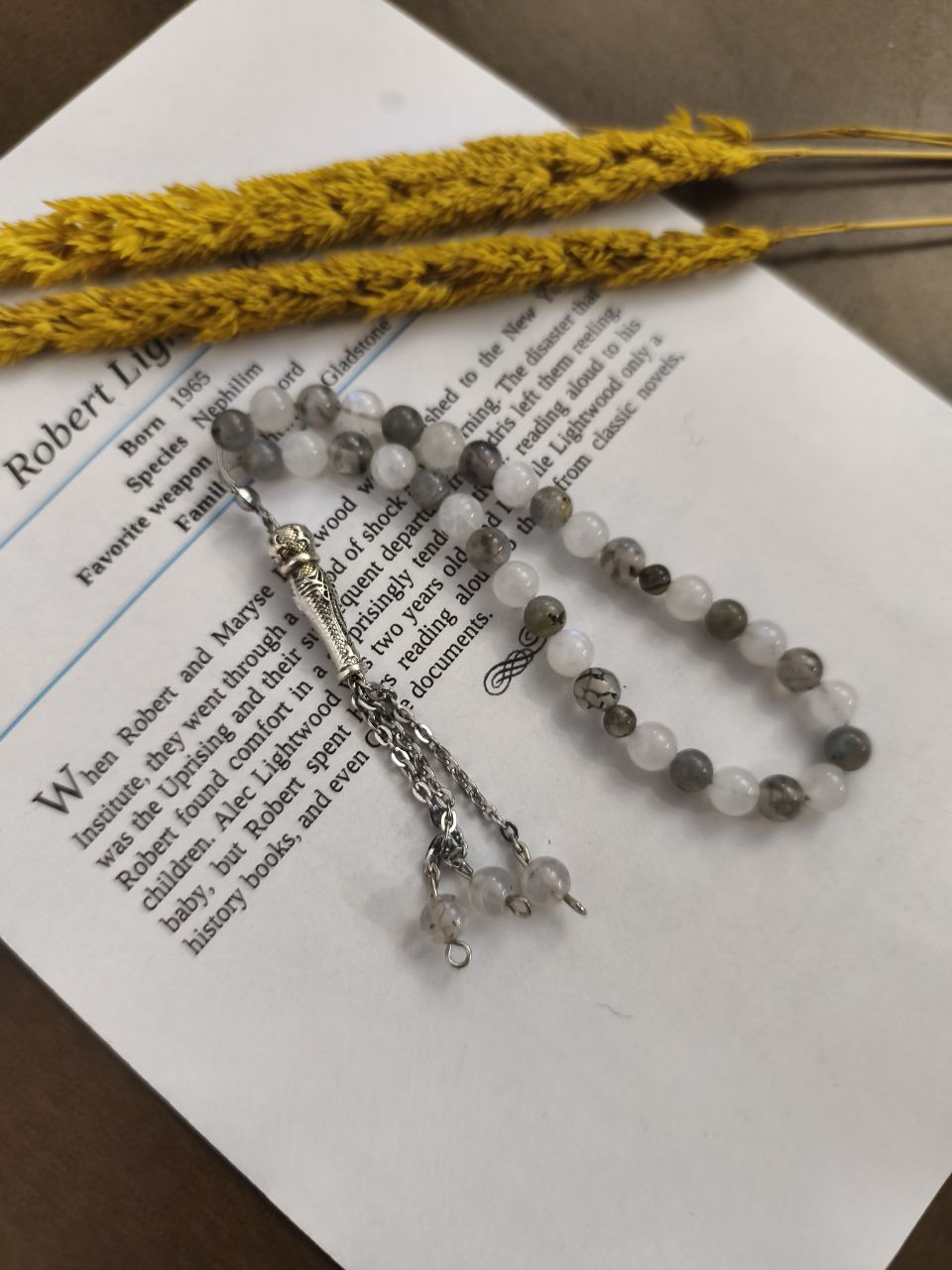 برای پاکسازی، تسبیح را روی خاک خشک یا در کنار دود خوشبو (مثل مریمگلی) بگذار.