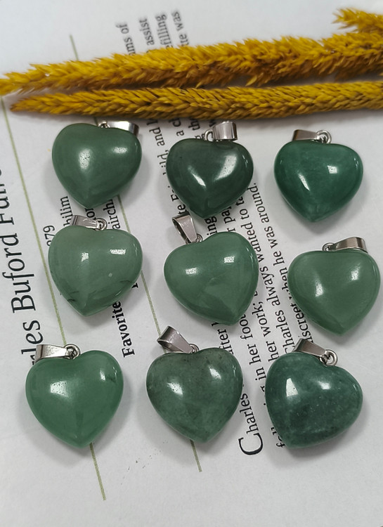 گردنبند سنگ آونتورین سبز قلبی تپل ۲سانت به همراه زنجیر استیل