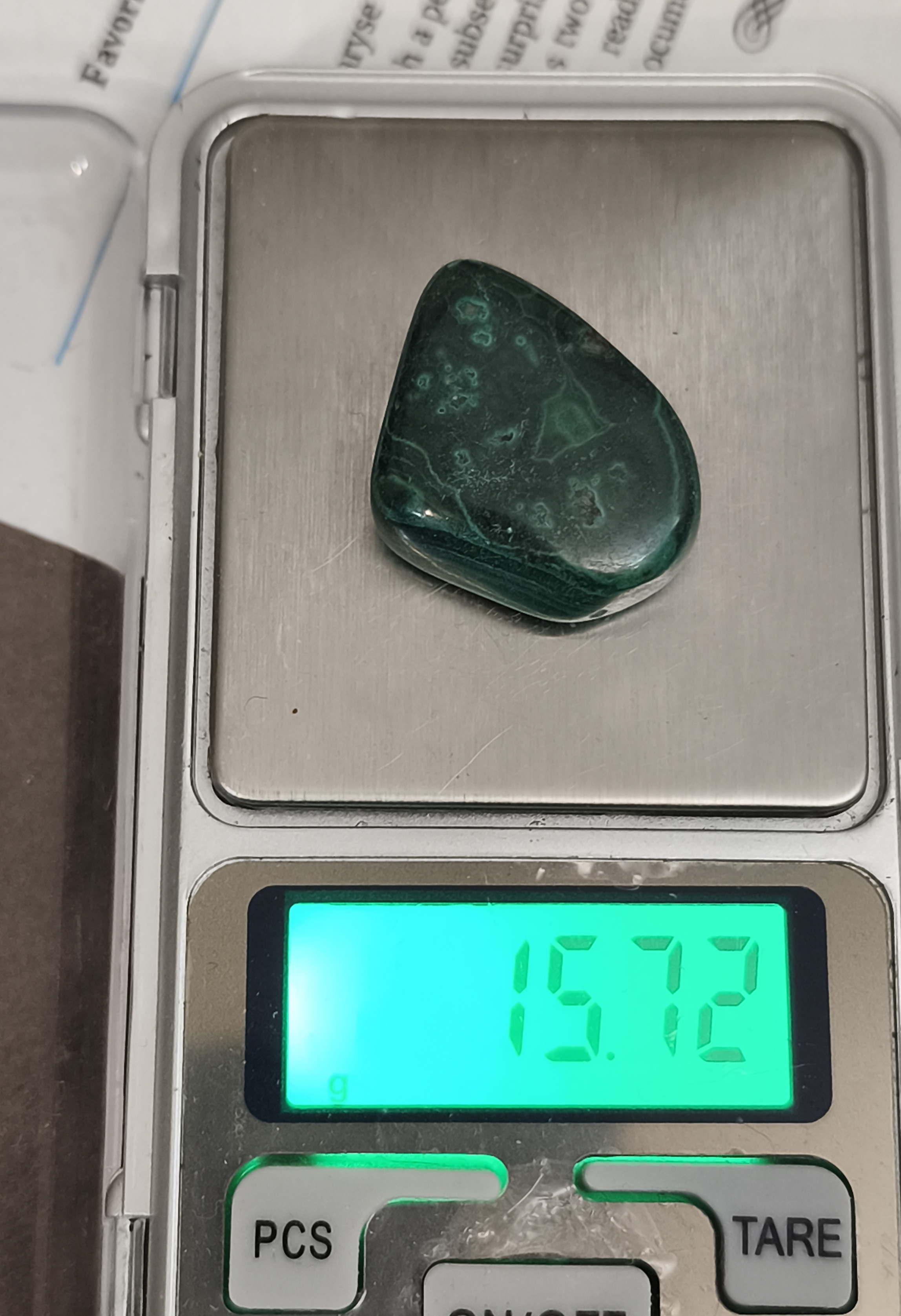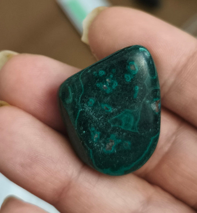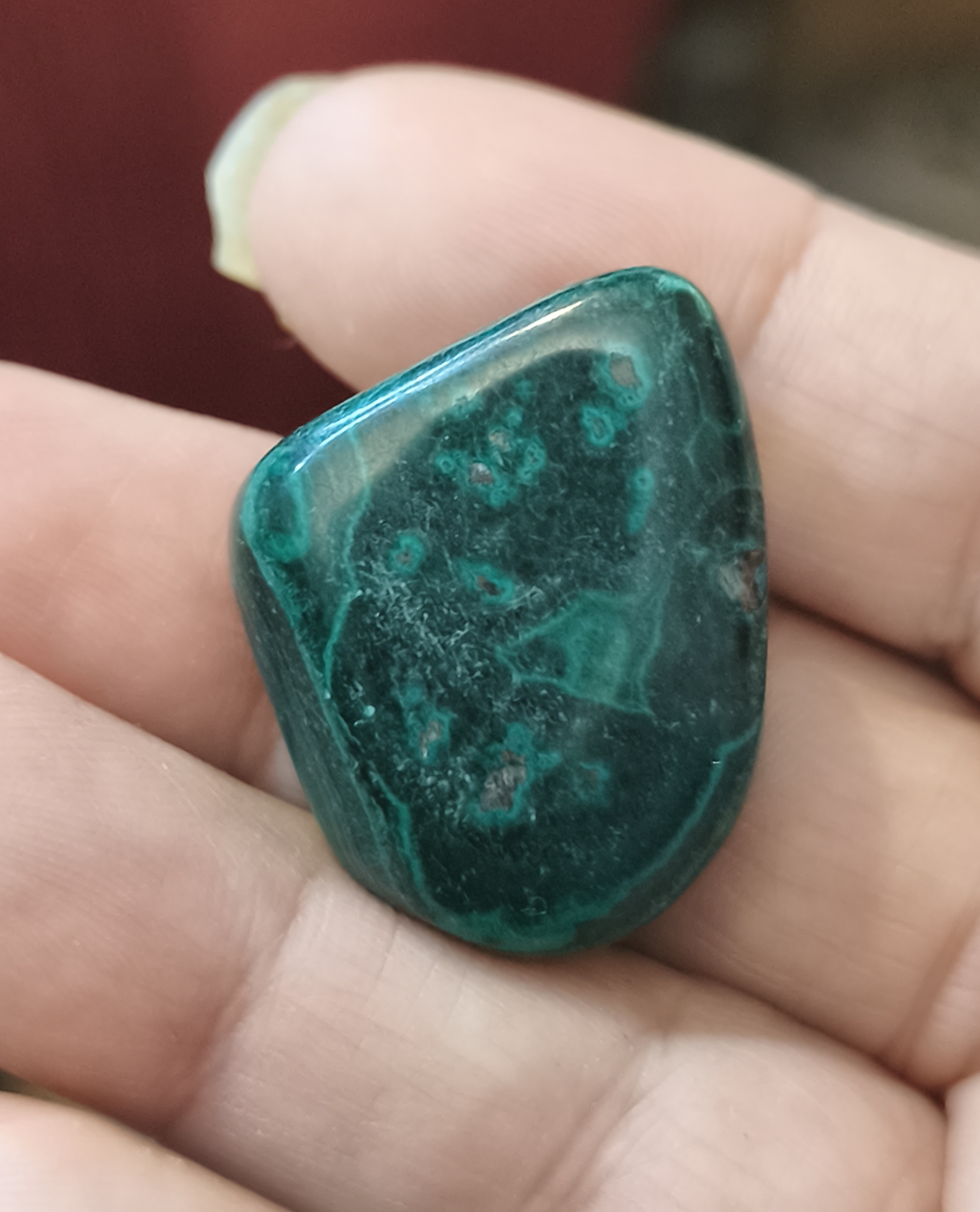 مالاکیت (Malachite) با رنگ سبز تیره و رگههای جذابش، به عنوان سنگ محافظ و دگرگونی شناخته میشود. این تامبل زیبا انرژیهای منفی را جذب و تبدیل به آرامش درونی میکند.