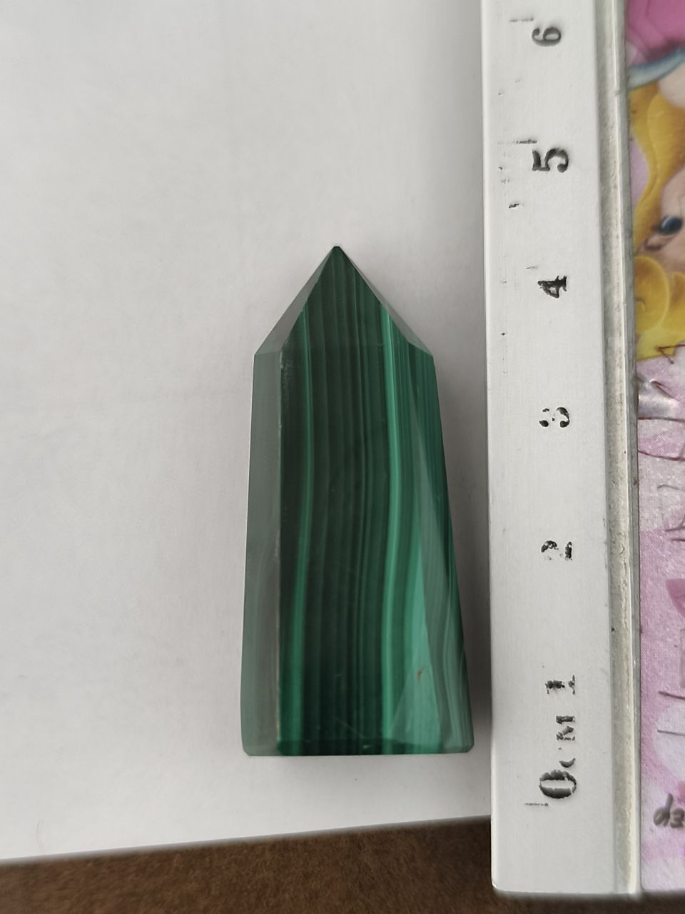 منشور مالاکیت کنگو، با رنگ سبز عمیق و خطوط طبیعی و الهامبخش خود، یکی از سنگهای قدرتمند در دنیای جواهرات و کریستالتراپی است.