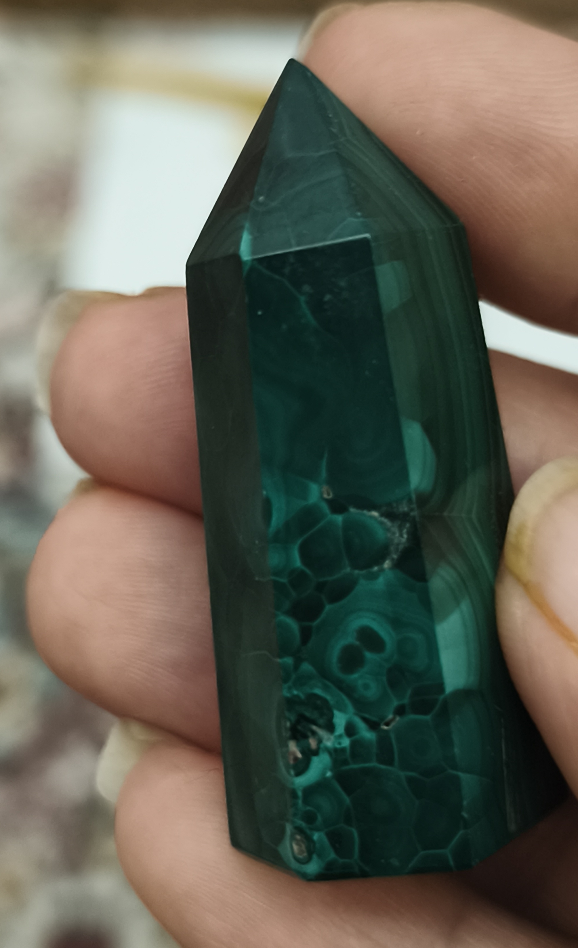 ✨ منشور مالاکیت کنگو نماد تحول درونی، محافظت معنوی و رشد روحی است و استفاده از آن در فضا یا هنگام مراقبه باعث ارتقای ارتعاشات انرژی میشود.