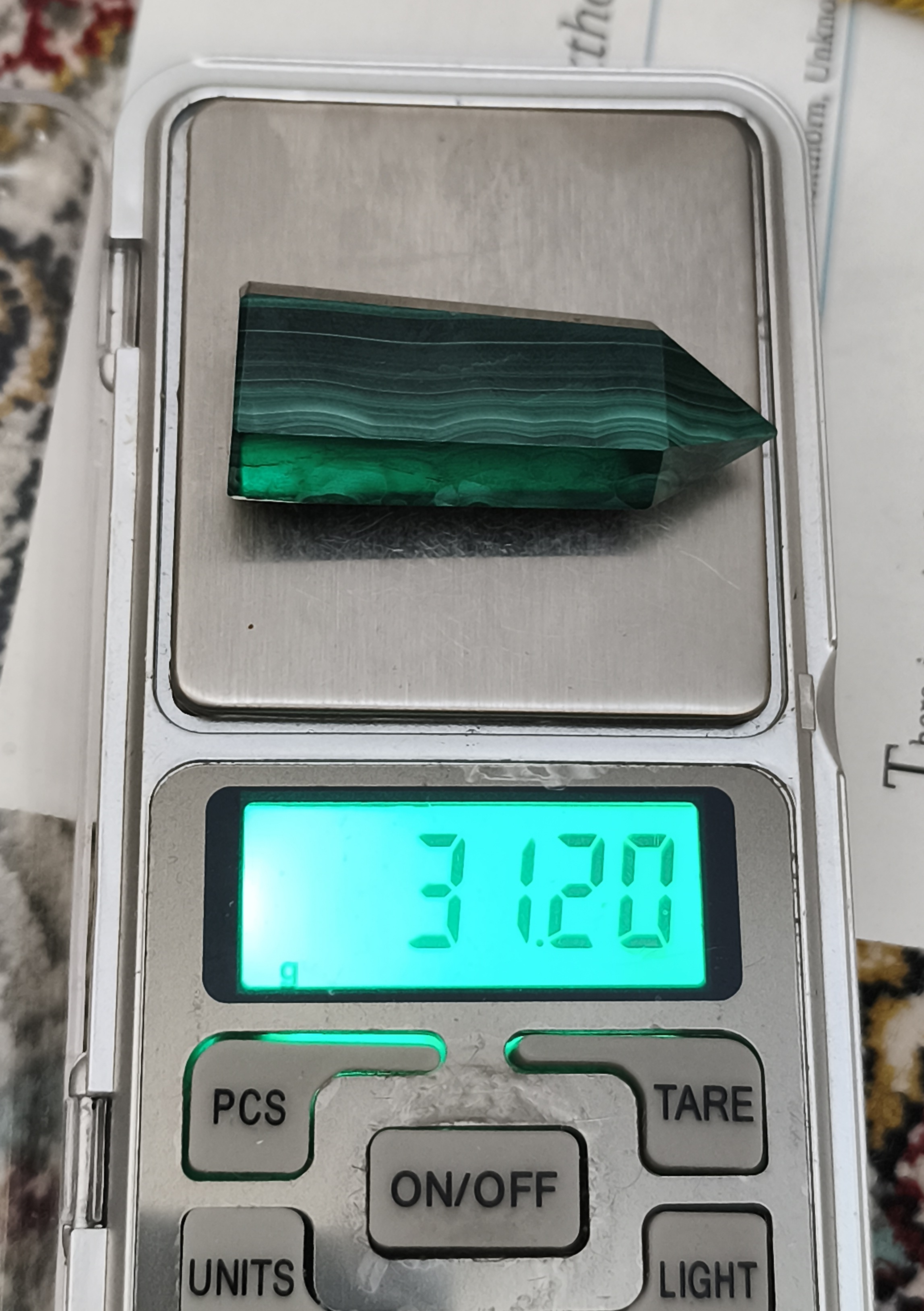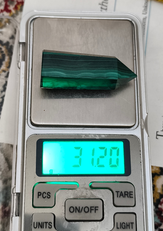 منشور مالاکیت اصل کنگو ۳۱.۲۰گرم اصل طبیعی معدنی کلکسیونی
