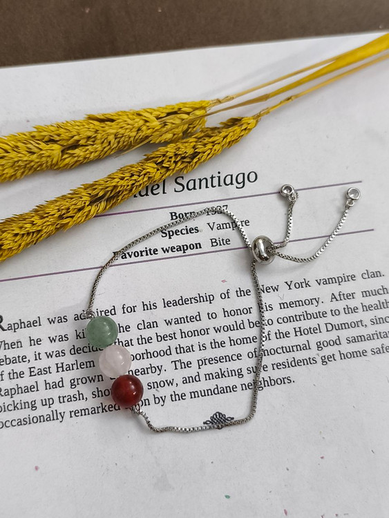 دستبند سنگهای طبیعی آونتورین سبز (Green Aventurine)، رزکوارتز (Rose Quartz) و عقیق قرمز (Red Agate)، ترکیبی الهامبخش از عشق، آرامش و انرژی درون است.