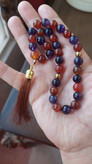 تسبیح سنگ آمیتیست و عقیق سلیمانی ۳۳ دانه؛ آرامش ذهن و تعادل درونی