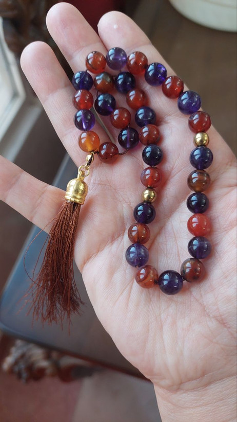 تسبیح سنگ آمیتیست عقیق سلیمانی 33دانه سنگ اصل طبیعی سایز سنگ 8 میل