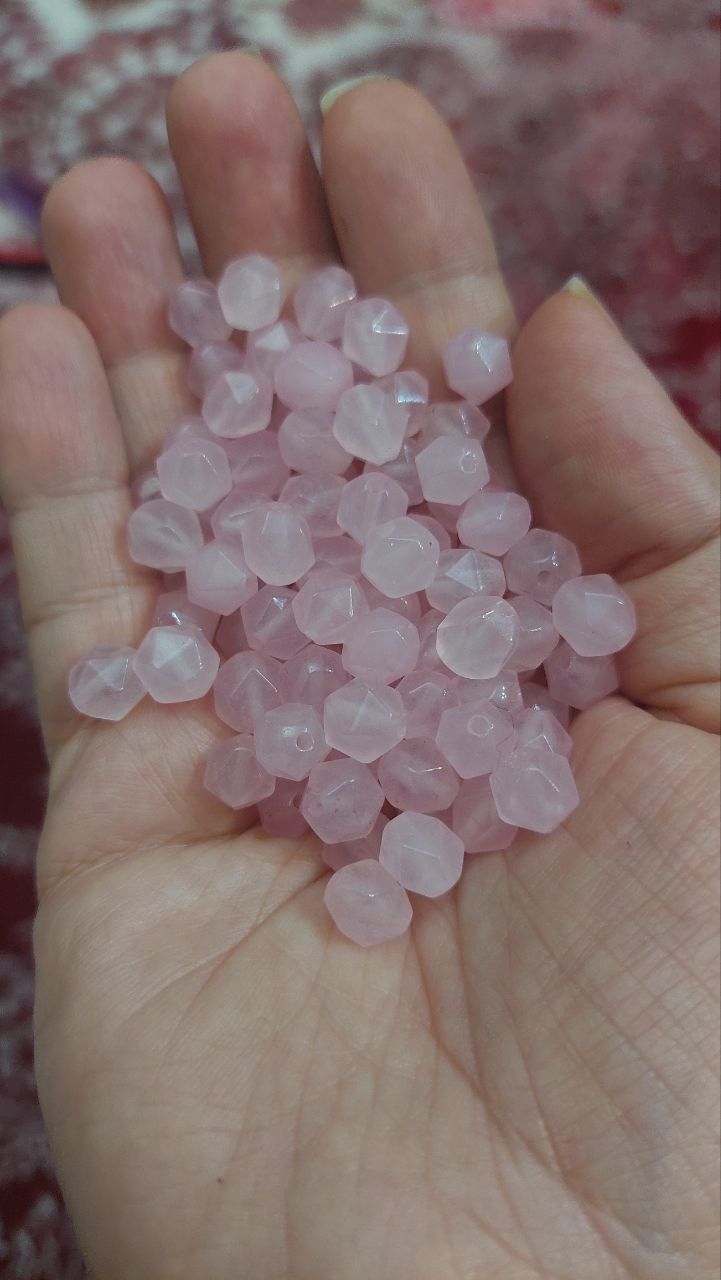 مهره رزکوارتز (Rose Quartz) با تراش استار و سایز ۸، نمادی از عشق خالص، مهربانی و آرامش درونی است.