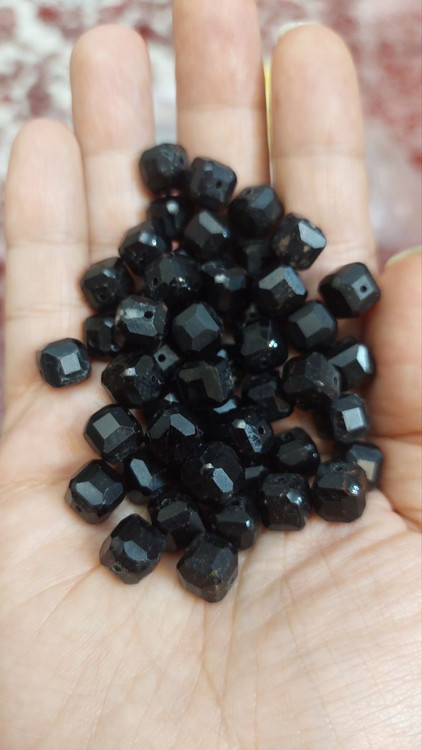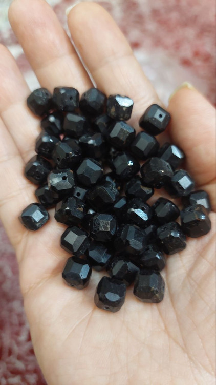 مهره سنگ تورمالین سیاه باکسی ۸میل اصل طبیعی سوراخ دار