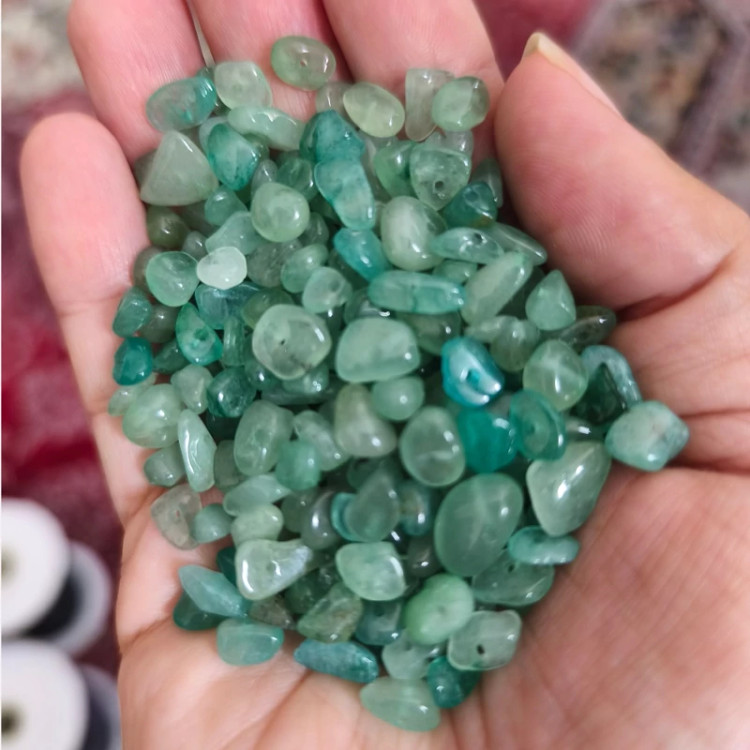 مهره سنگ آونتورین سبز چیپسی سوراخ دار سنگ اصل درجه یک تراش نخورده راف سنگ طبیعی