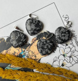 گردنبند سنگ آبسیدین لکه برفی قلبی با زنجیر استیل سنگ اصل طبیعی