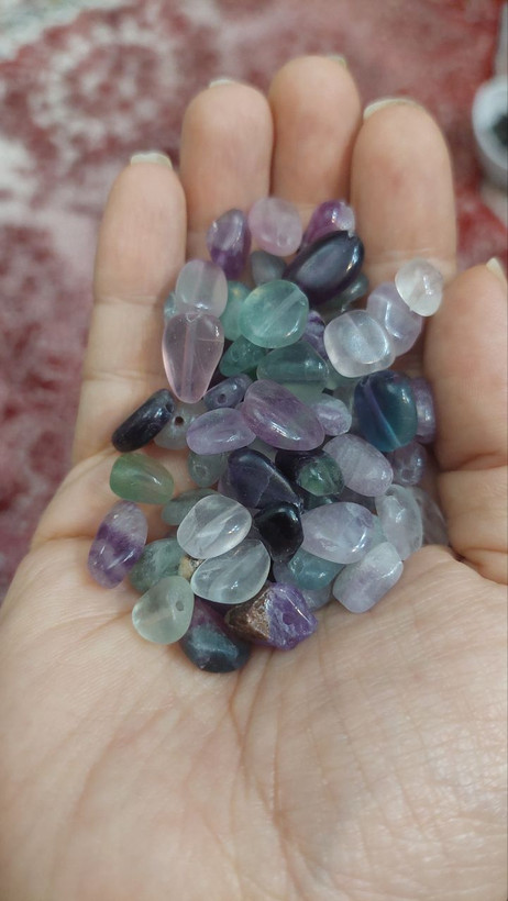 فلوریت رنگینکمانی (Rainbow Fluorite) سنگی از دنیای رازآلود رنگهاست که با طیف زیبایی از سبز، بنفش و آبی، انرژی ذهن، بدن و روح را هماهنگ میکند. این مهرهی تامبل سوراخدار با تراش طبیعیاش، نماد تمرکز، آرامش و پاکی درونی است 💫