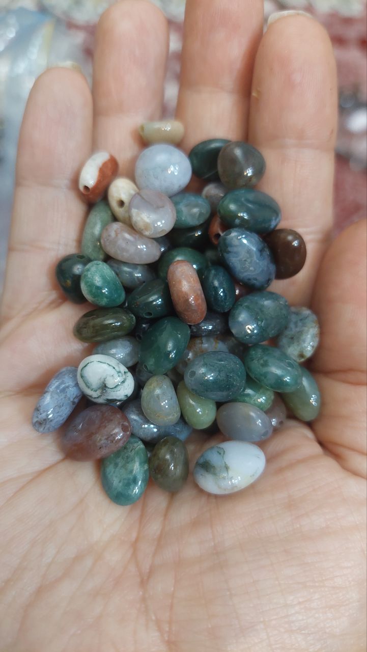 مهره تامبل عقیق خزه ای 6 در 8 میل سنگ اصل طبیعی سوراخ دار