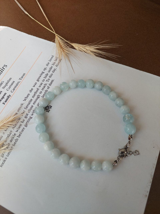 دستبند سنگ آکوامارین مون استون سنگاصل طبیعی با قفل استیل