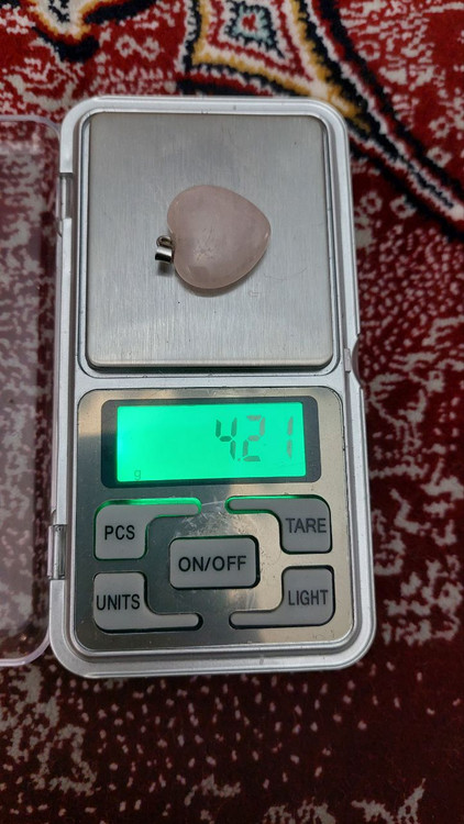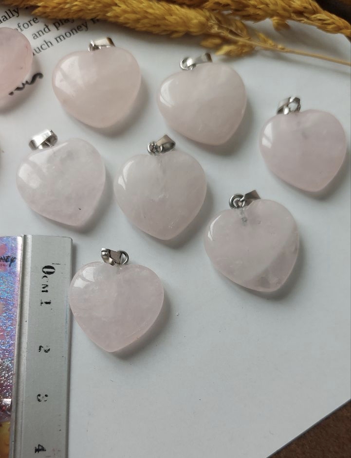 گردنبند سنگ رزکوارتز قلبی دو سانت به همراه زنجیر استیل
