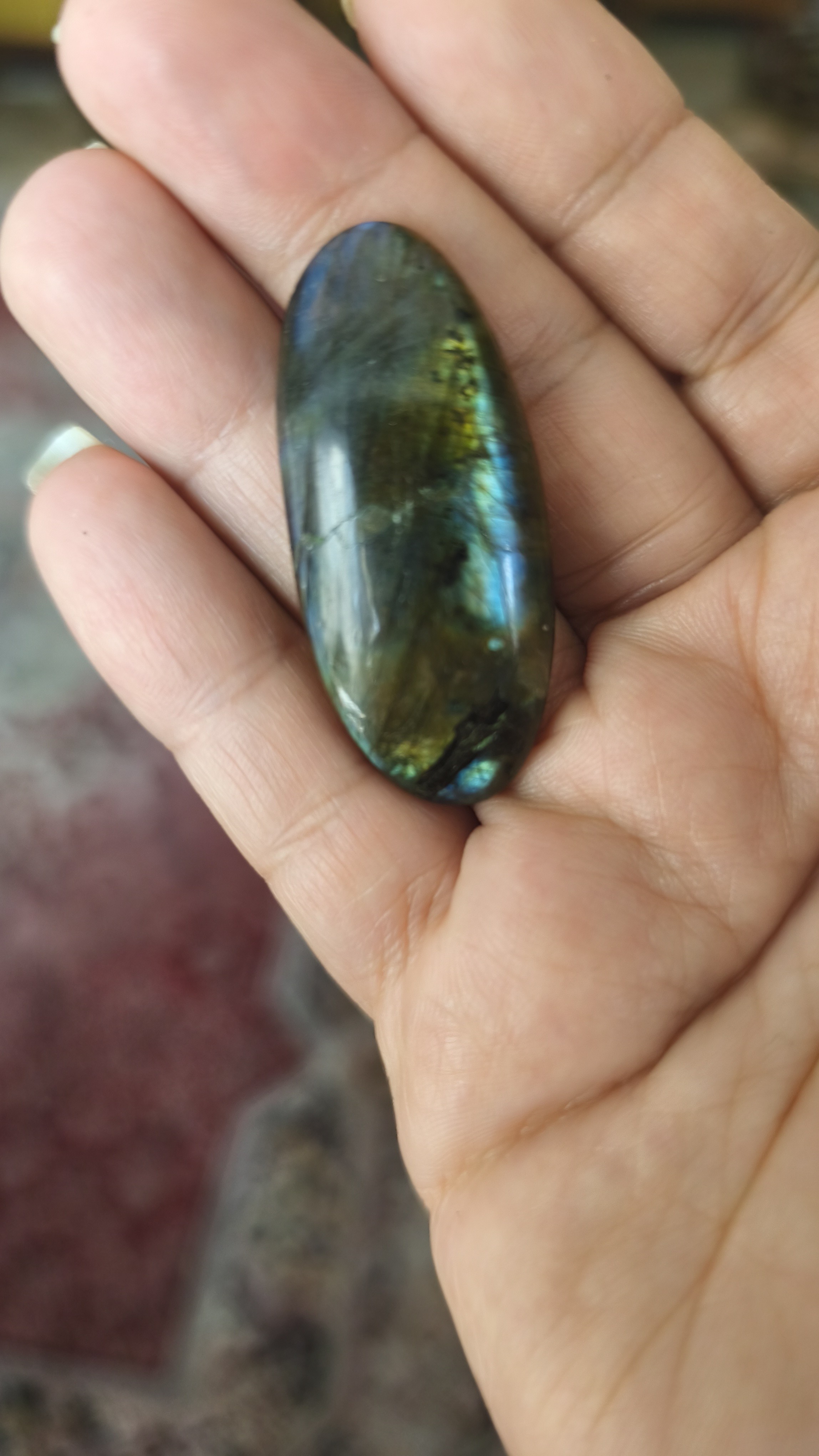 نگین سنگ لابرادوریت بیضی اصل طبیعی با تلاولویی بی نظیر طبیعی 9گرم