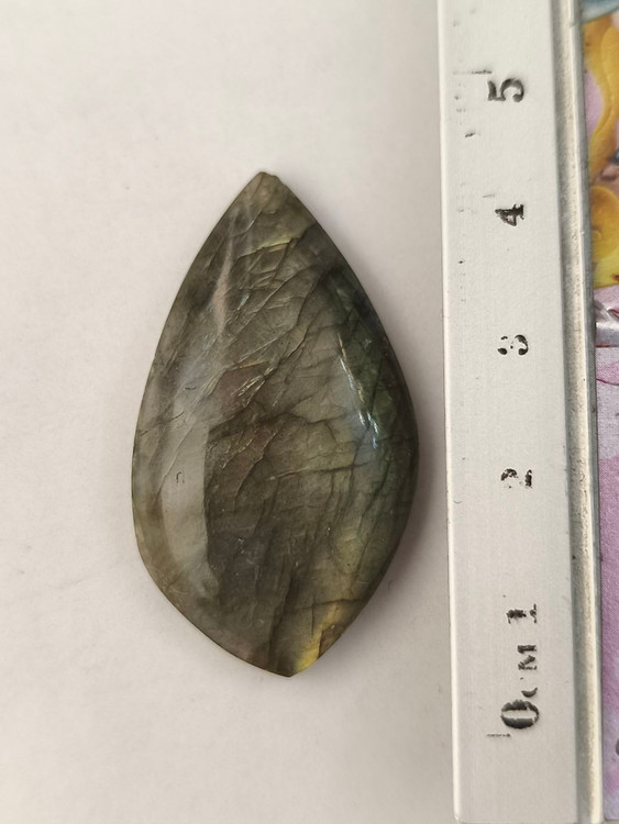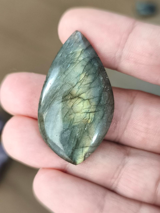 نگین لابرادوریت بیضی که به «سنگ جادوگران» یا «سنگ نور شمالی» معروفه، سنگی اسرارآمیز با بازی رنگهای آبی، سبز و طلاییه که درونش نوری جادویی پنهان شده.