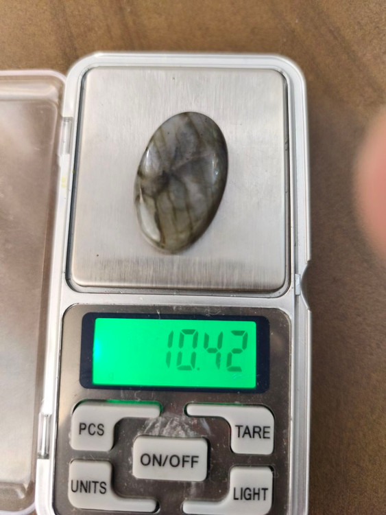 نگین لابرادوریت بیضی که به «سنگ جادوگران» یا «سنگ نور شمالی» معروفه، سنگی اسرارآمیز با بازی رنگهای آبی، سبز و طلاییه که درونش نوری جادویی پنهان شده.