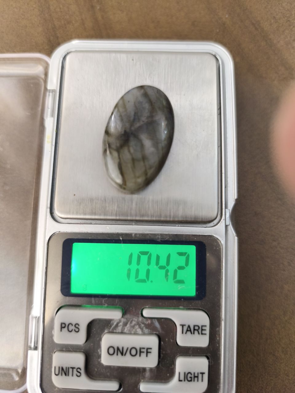 نگین لابرادوریت بیضی که به «سنگ جادوگران» یا «سنگ نور شمالی» معروفه، سنگی اسرارآمیز با بازی رنگهای آبی، سبز و طلاییه که درونش نوری جادویی پنهان شده.