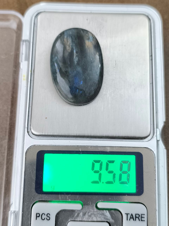 نگین لابرادوریت بیضی که به «سنگ جادوگران» یا «سنگ نور شمالی» معروفه، سنگی اسرارآمیز با بازی رنگهای آبی، سبز و طلاییه که درونش نوری جادویی پنهان شده.