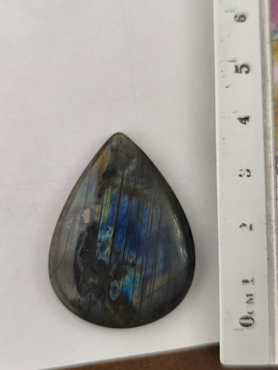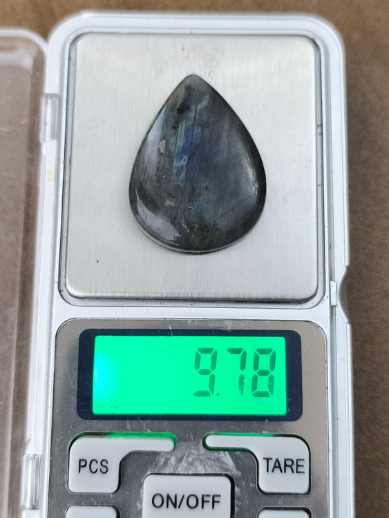 نگین لابرادوریت بیضی که به «سنگ جادوگران» یا «سنگ نور شمالی» معروفه، سنگی اسرارآمیز با بازی رنگهای آبی، سبز و طلاییه که درونش نوری جادویی پنهان شده.
