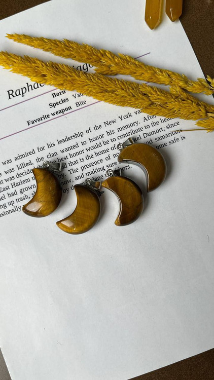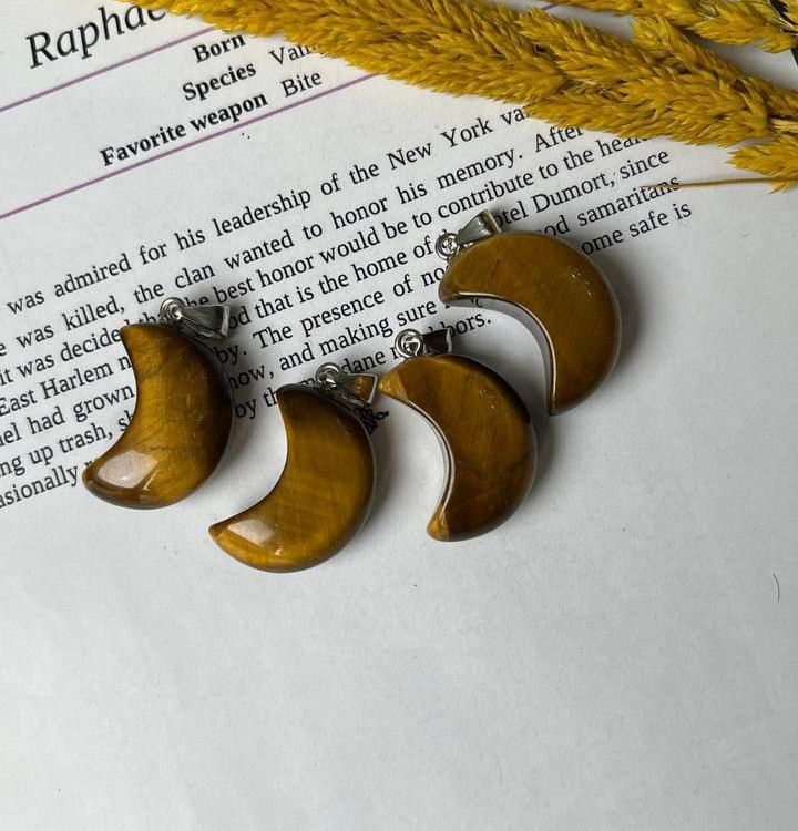 گردنبند سنگ چشم ببر مدل ماه درشت ۲و نیم سانت با زنجیر استیل