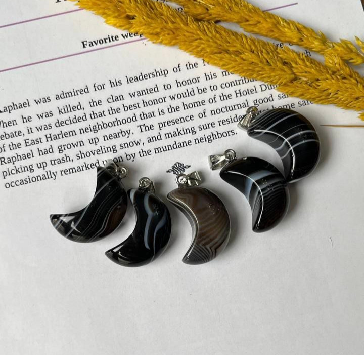 گردنبند سنگ عقیق سلیمانی مدل ماه درشت ۲و نیم سانت اصل طبیعی با زنجیر استیل