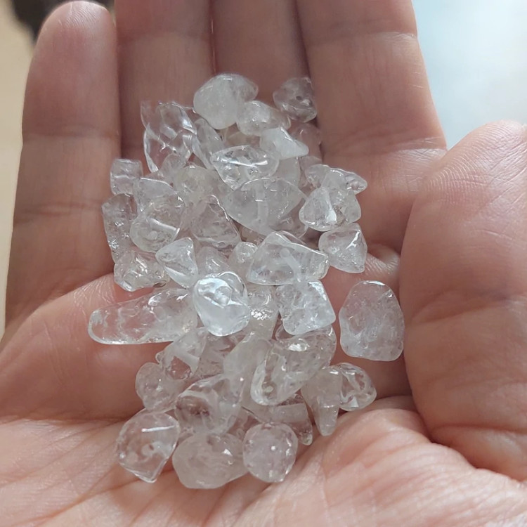 مهره سنگ کریستال کوارتز چیپسی سنگ کوارتز شفاف سنگ اصل درجه یک سوراخ دار تراش نخورده دفرمه