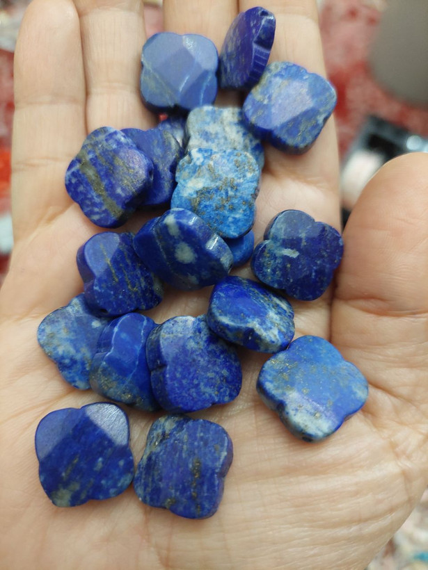 مهره سنگ لاجورد تراش ون کلیف سوراخ دار اصل طبیعی