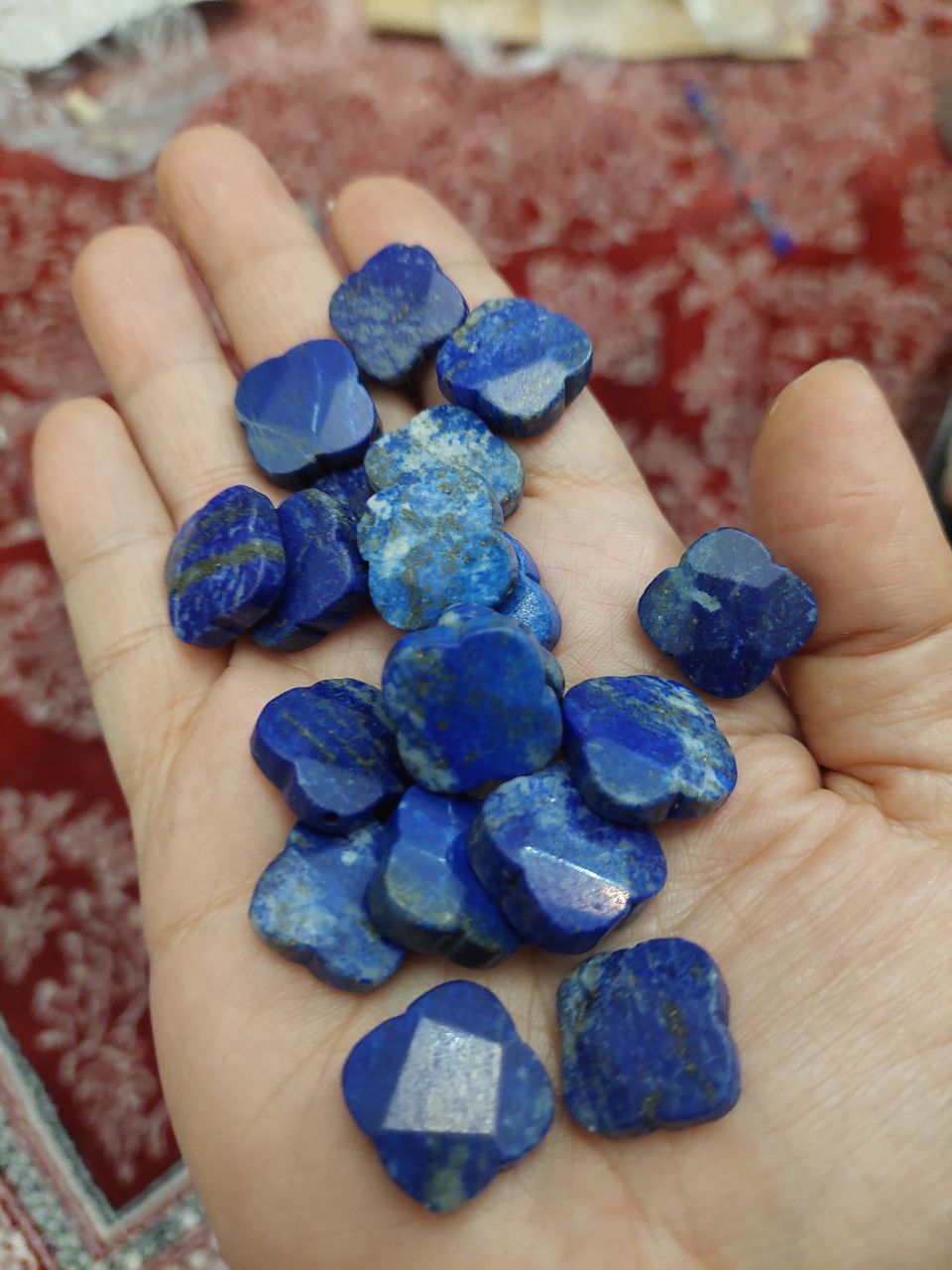 مهره سنگ لاجورد تراش ون کلیف سوراخ دار اصل طبیعی