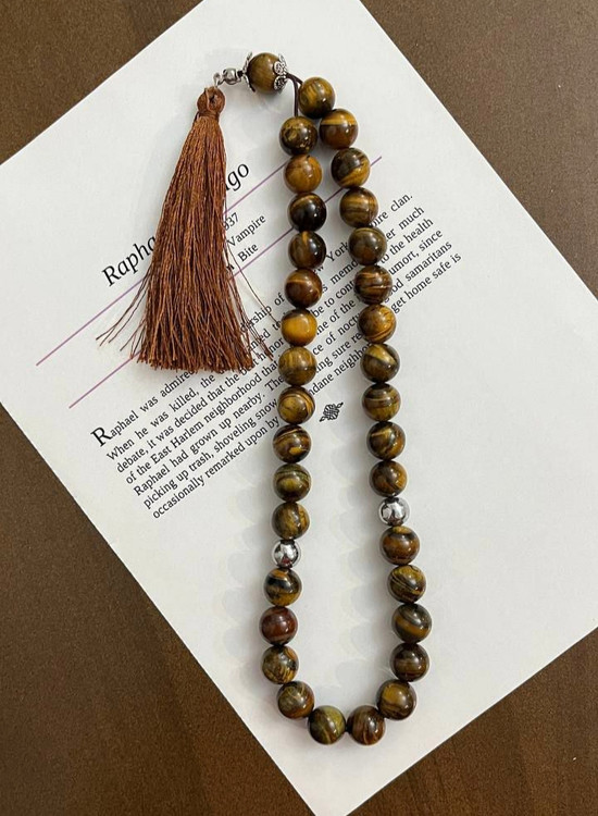 تسبیح چشم ببر (Tiger’s Eye) با ۳۳ دانه ۱۰ میلیمتری، ترکیبی از زیبایی طبیعی و انرژی قدرتمنده.