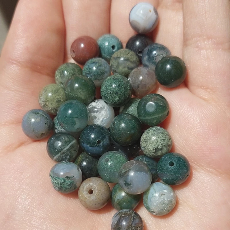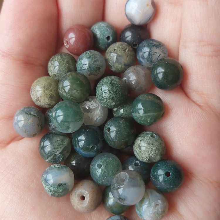 مهره سنگ عقیق خزه ای سایز 8 درجه یک سنگ اصل گوی سنگ مهره