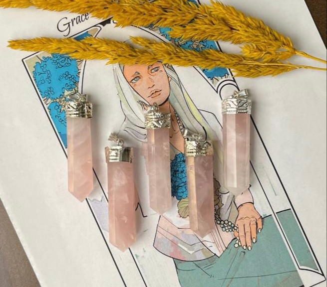 گردنبند رزکوارتز منشوری (Prism Rose Quartz / کوارتز صورتی / سنگ عشق)؛ عشق، آرامش، مدیتیشن و انرژی درمانی