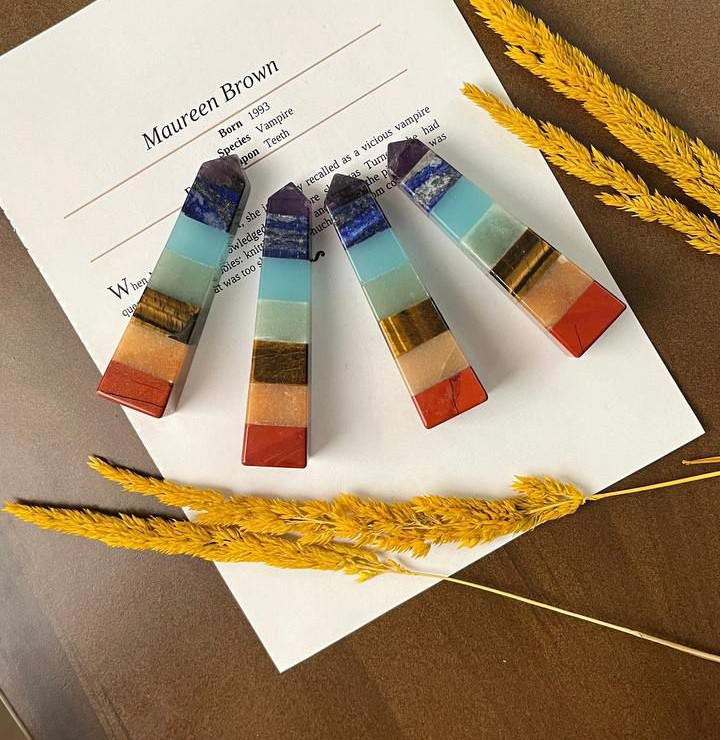 این قطعه دکوری با هفت سنگ طبیعی — جاسپر قرمز، آونتورین نارنجی، چشم ببر، آونتورین سبز، عقیق آبی، لاجورد و آمیتیست — ساخته شده تا انرژی هر چاکرا رو فعال و متعادل کنه.