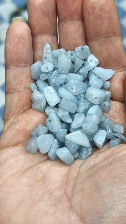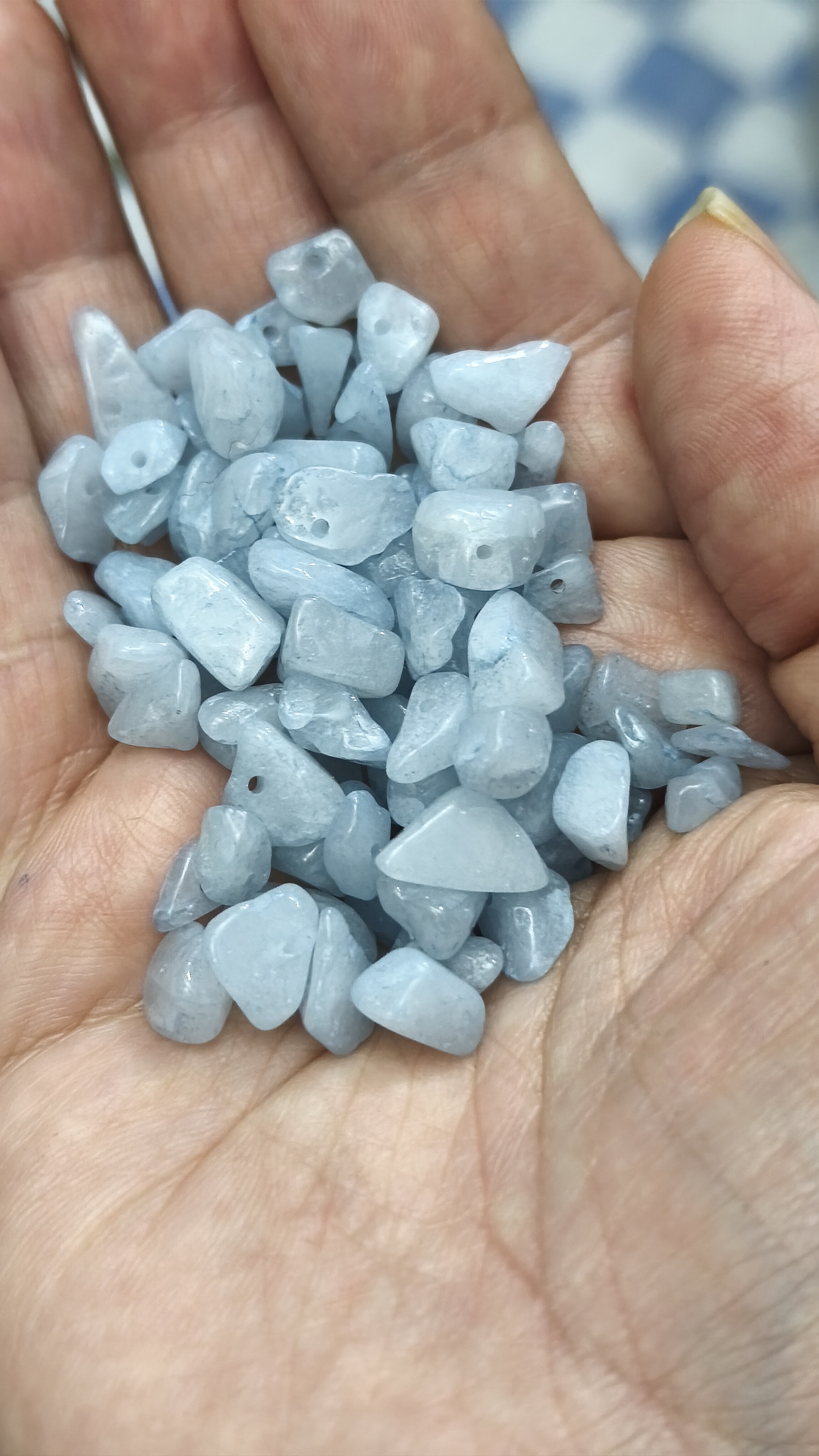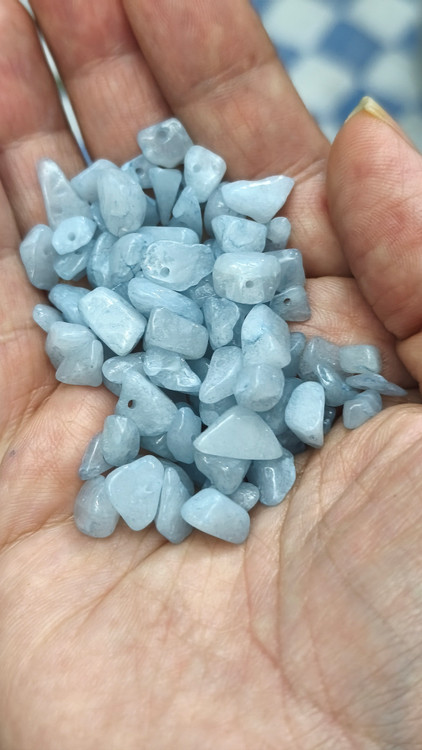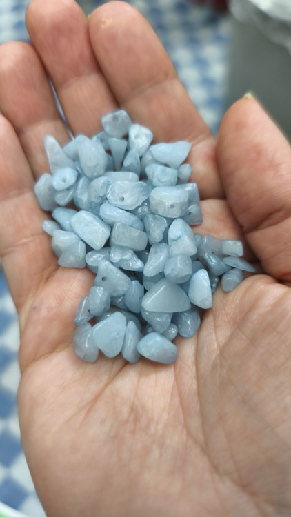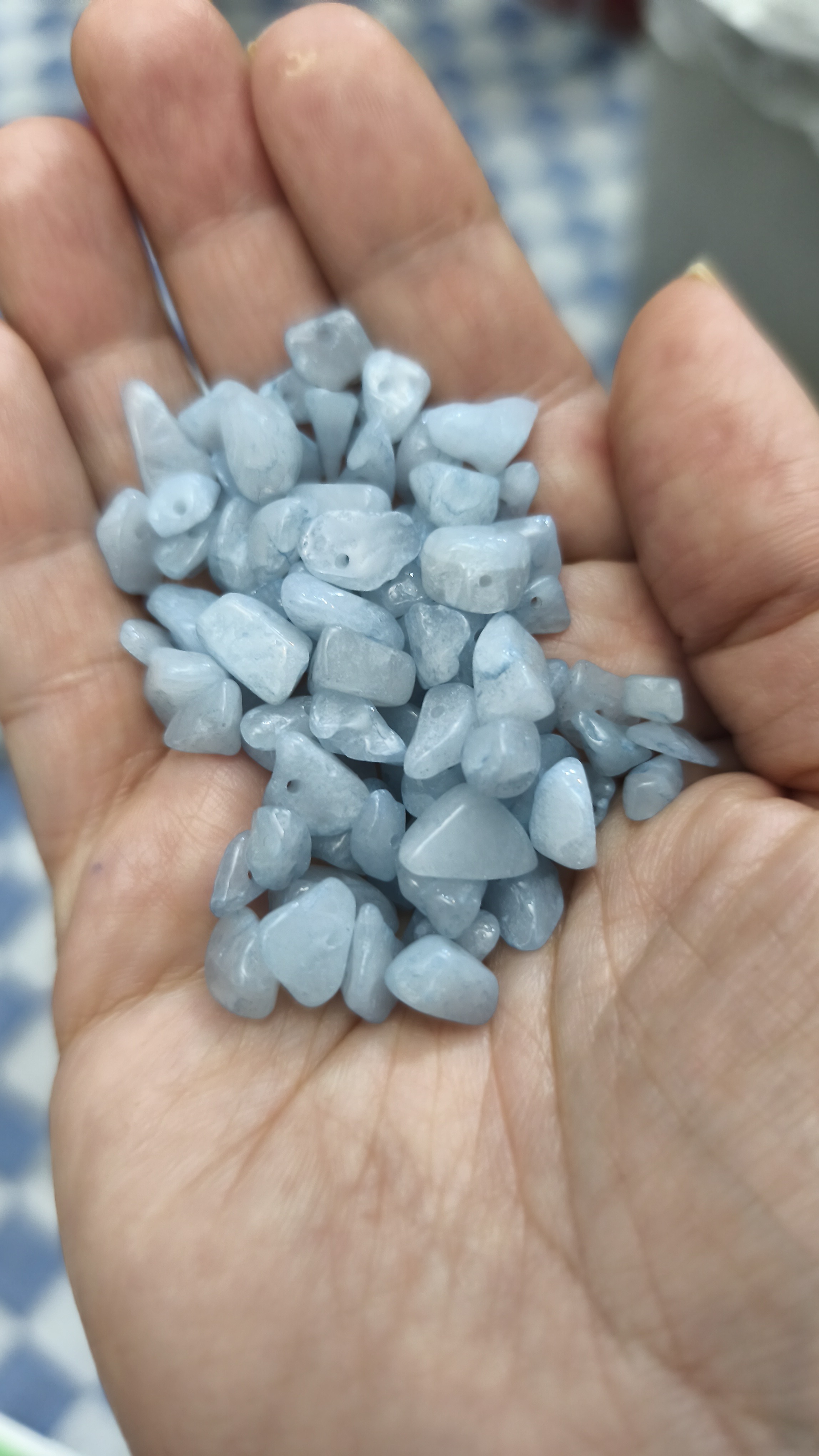 مهره سنگ آکوامارین چیپسی تراش نخورده دفرمه راف سنگ اصل طبیعی