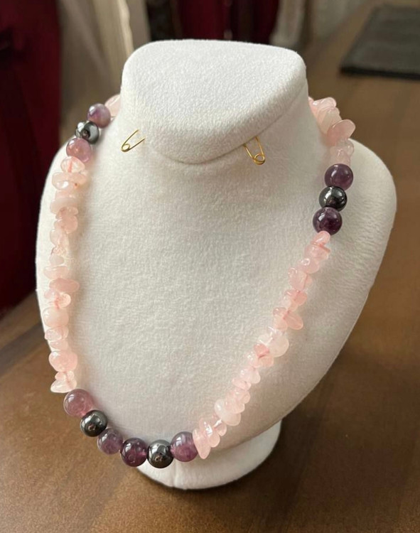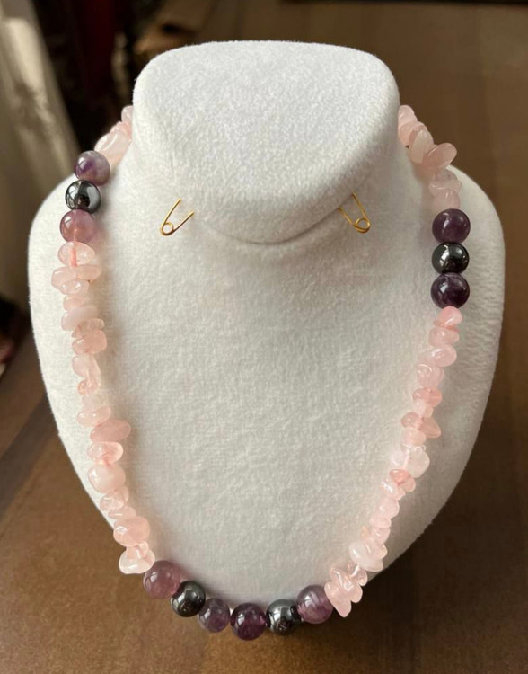 💎 نام دیگر: گردنبند عشق و محافظت، رزکوارتز، آمیتیست و حدید