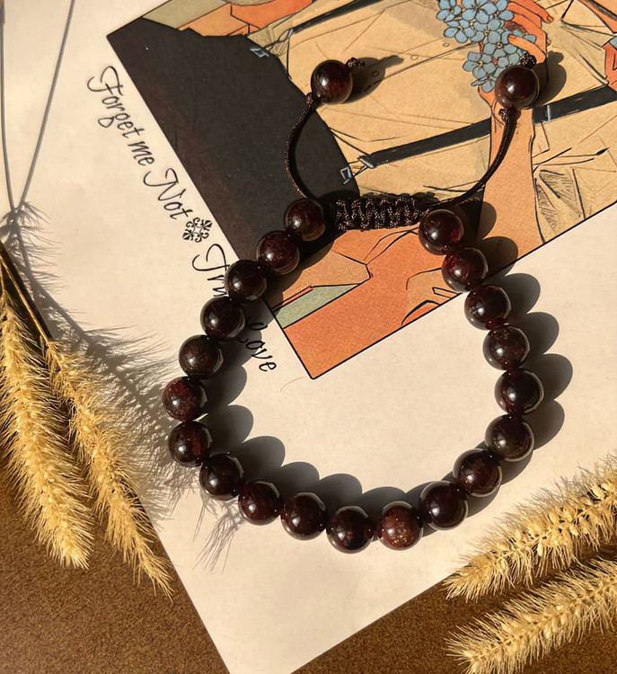 این دستبند با سنگهای طبیعی گارنت تراشخورده و گره کشویی قابل تنظیم طراحی شده تا به راحتی با هر سایز دست هماهنگ باشد و انرژی مثبت و قدرت درونی را به تو منتقل کند.