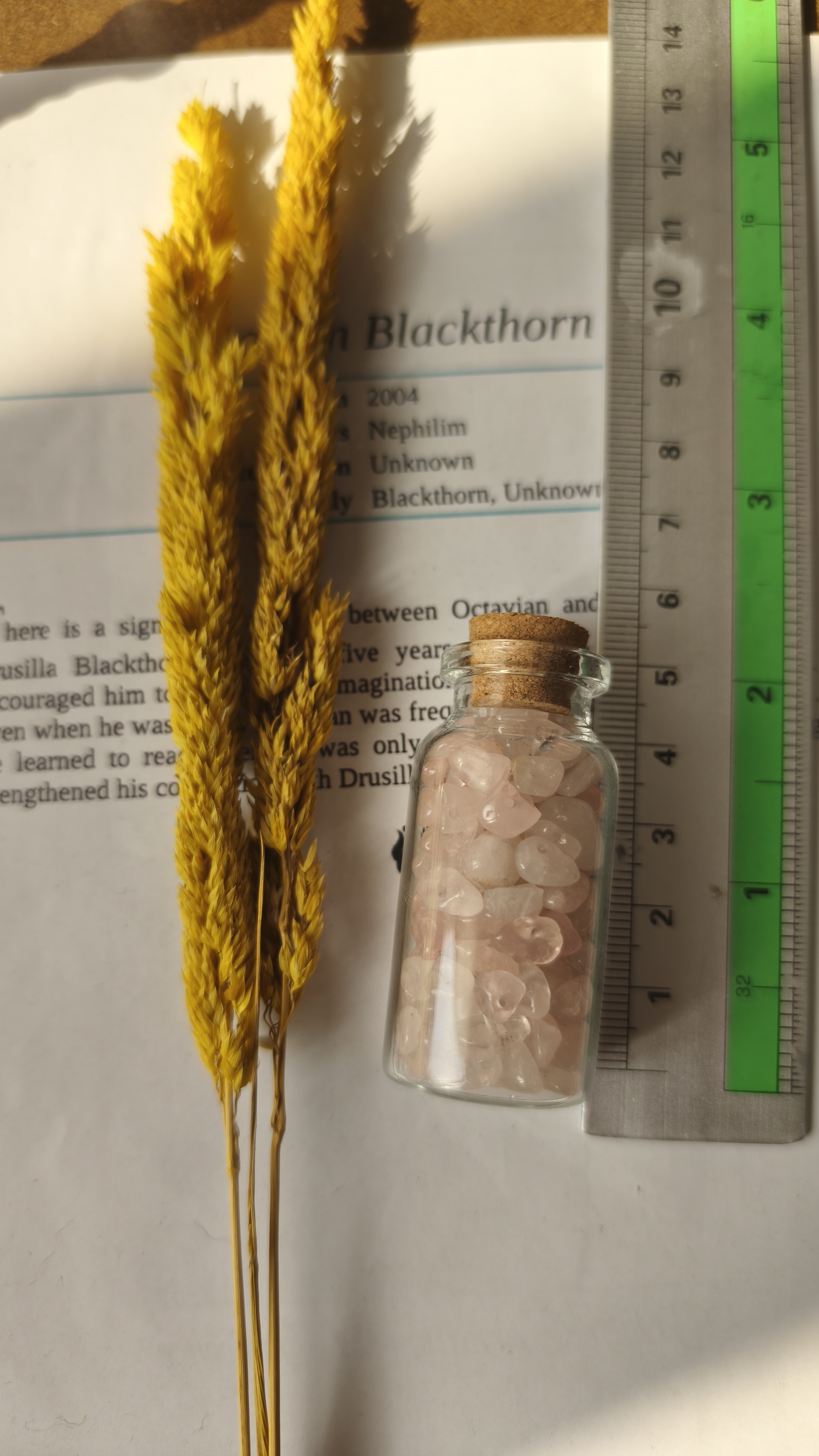 این شیشه شامل چیپسهای رزکوارتز طبیعی سوراخدار است که هم برای ساخت زیورآلات استفاده میشود و هم برای مدیتیشن، انرژیدرمانی و تزئینهای معنوی.