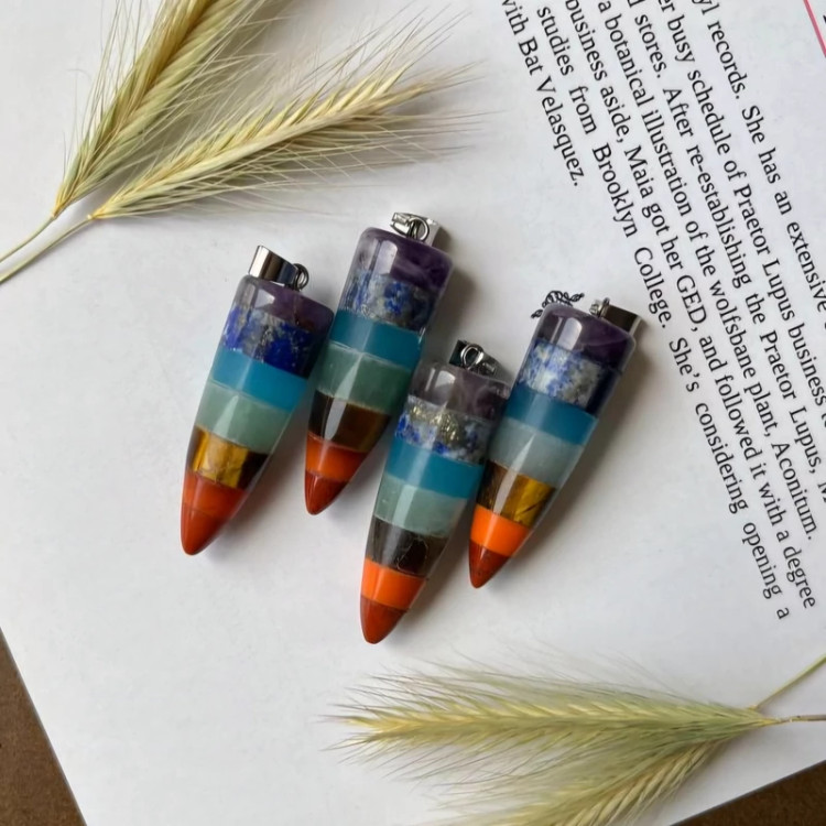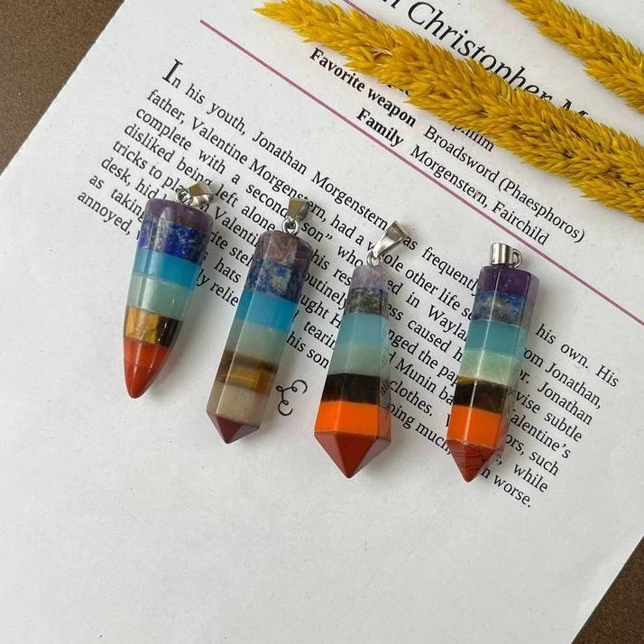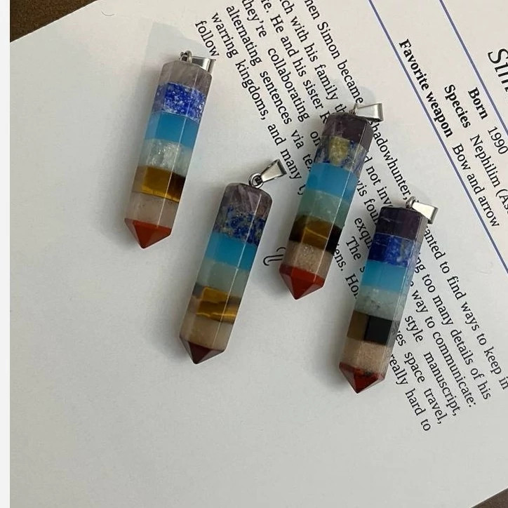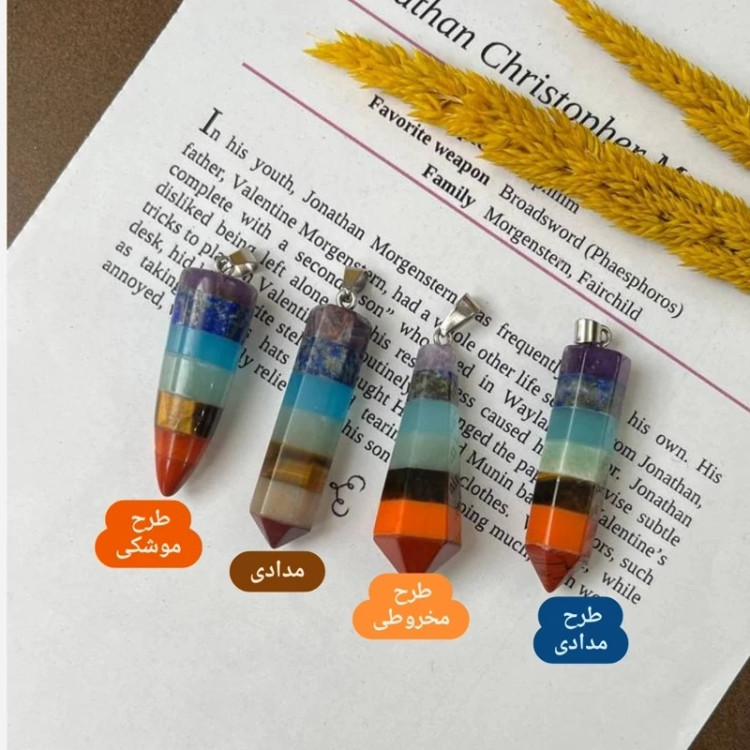گردنبند هفت چاکرا منشوری با زنجیر ویتالی یا دیپلمات یا بند چرم تمام سنگ اصل