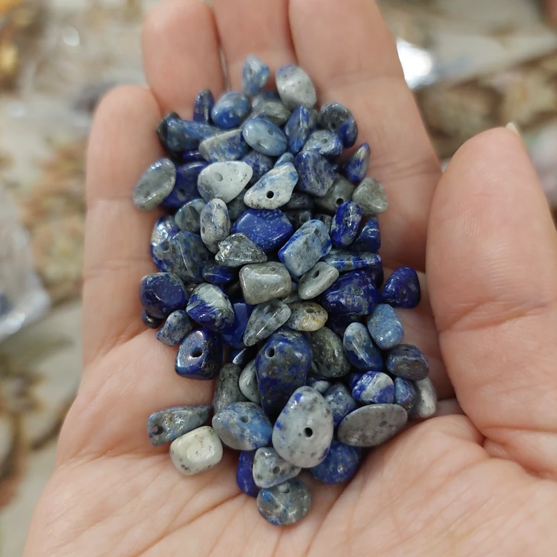 مهره سنگ لاجورد افغان چیپسی سوراخ دار دفرمه تراش نخورده سنگ اصل درجه یک