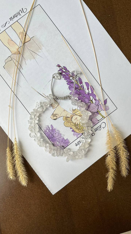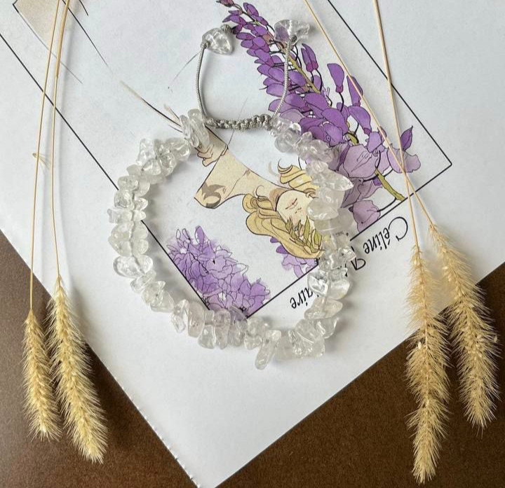 دستبند با گره کشویی حرفهای ساخته شده و کاملاً قابل تنظیم است. چیپسهای طبیعی کریستال کوارتز، زیبایی و جلوهای منحصر به فرد به دستبند داده و انرژی لطیف، آرامش ذهن و شفافیت فکری را افزایش میدهند.