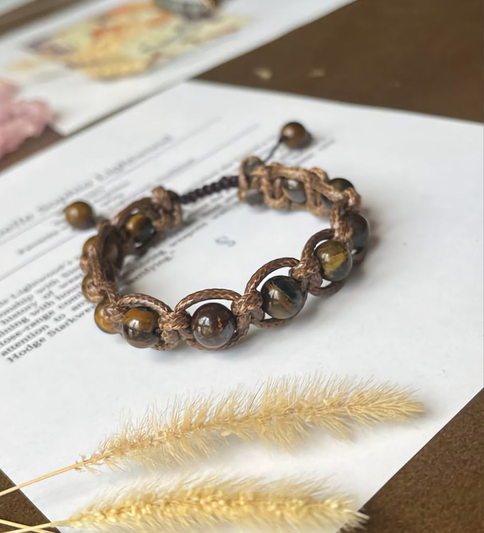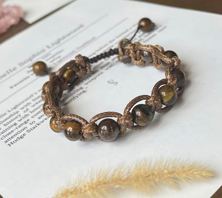 🐅 دستبند چشم ببر با بافت چرم و گره کشویی