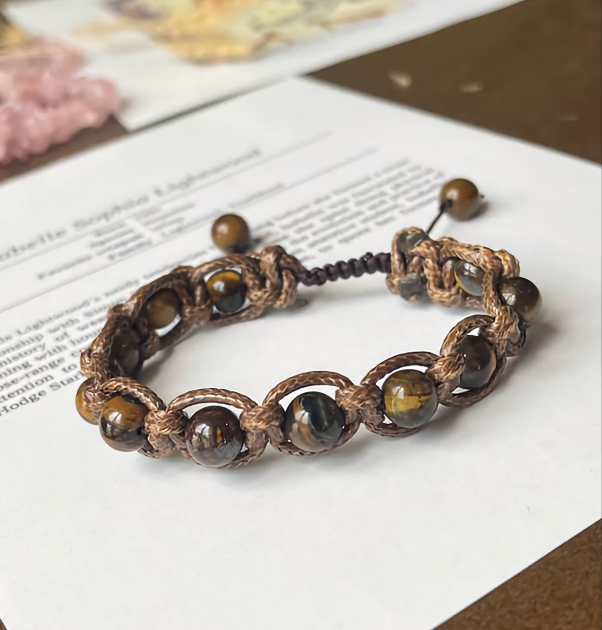 🐅 دستبند چشم ببر با بافت چرم و گره کشویی