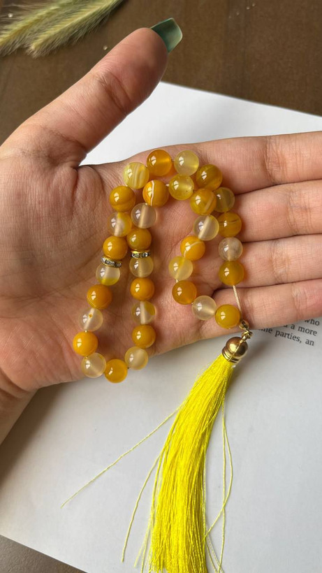 🌟 تسبیح عقیق زرد ۳۳ دانه ۸ میل