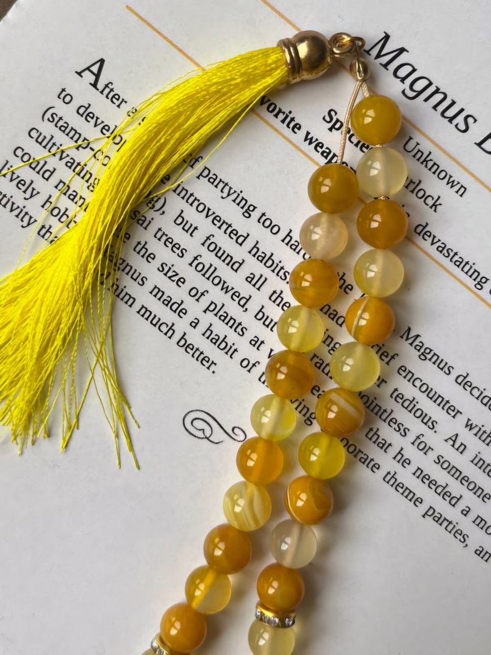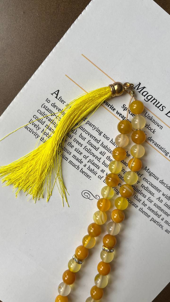 🌟 تسبیح عقیق زرد ۳۳ دانه ۸ میل