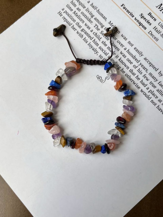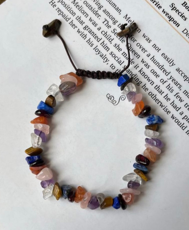 دستبند هفت چاکرای چیپسی با ترکیبی از سنگهای طبیعی و انرژیبخش ساخته شده است: