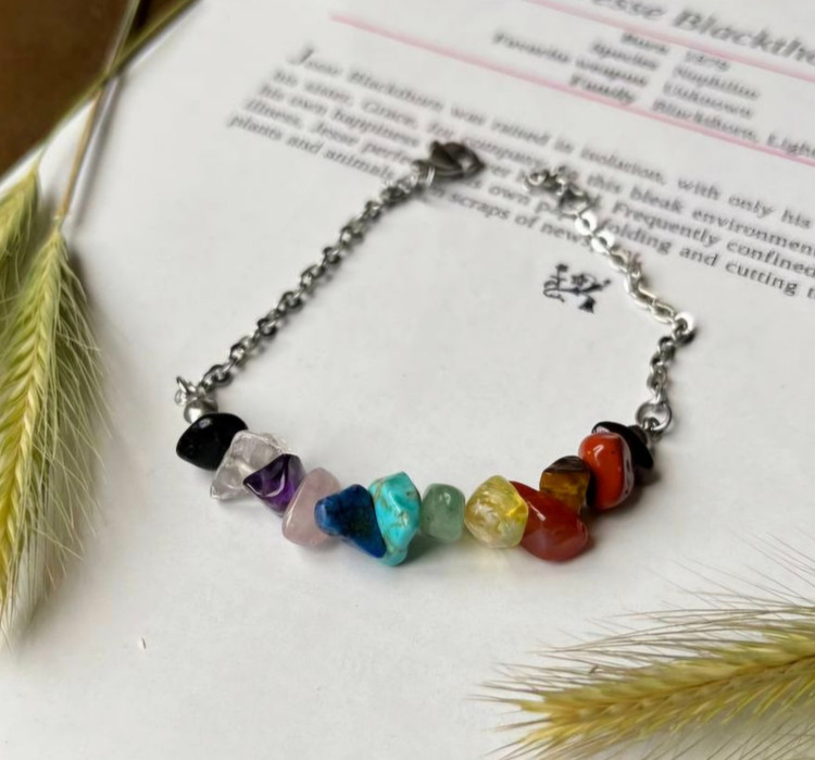 دستبند هفت چاکرای چیپسی ساخته شده از ۱۳سنگ اصل طبیعی با زنجیر و قفل استیل