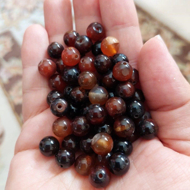 مهره سنگ عقیق سلیمانی سایز 8 سنگ اصل درجه یک گوی سنگ سوراخ دار