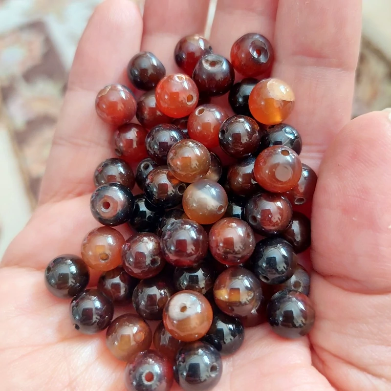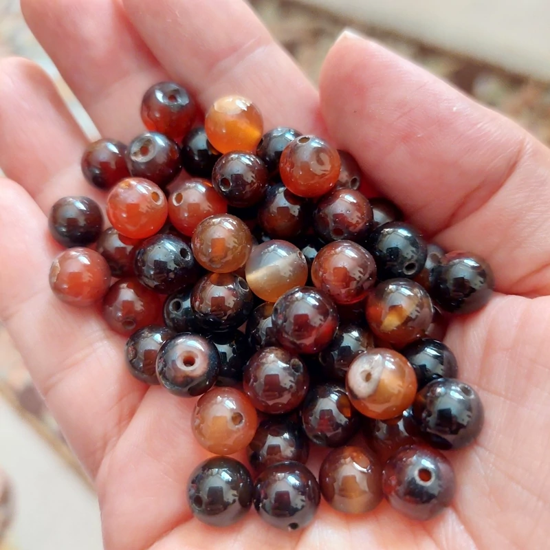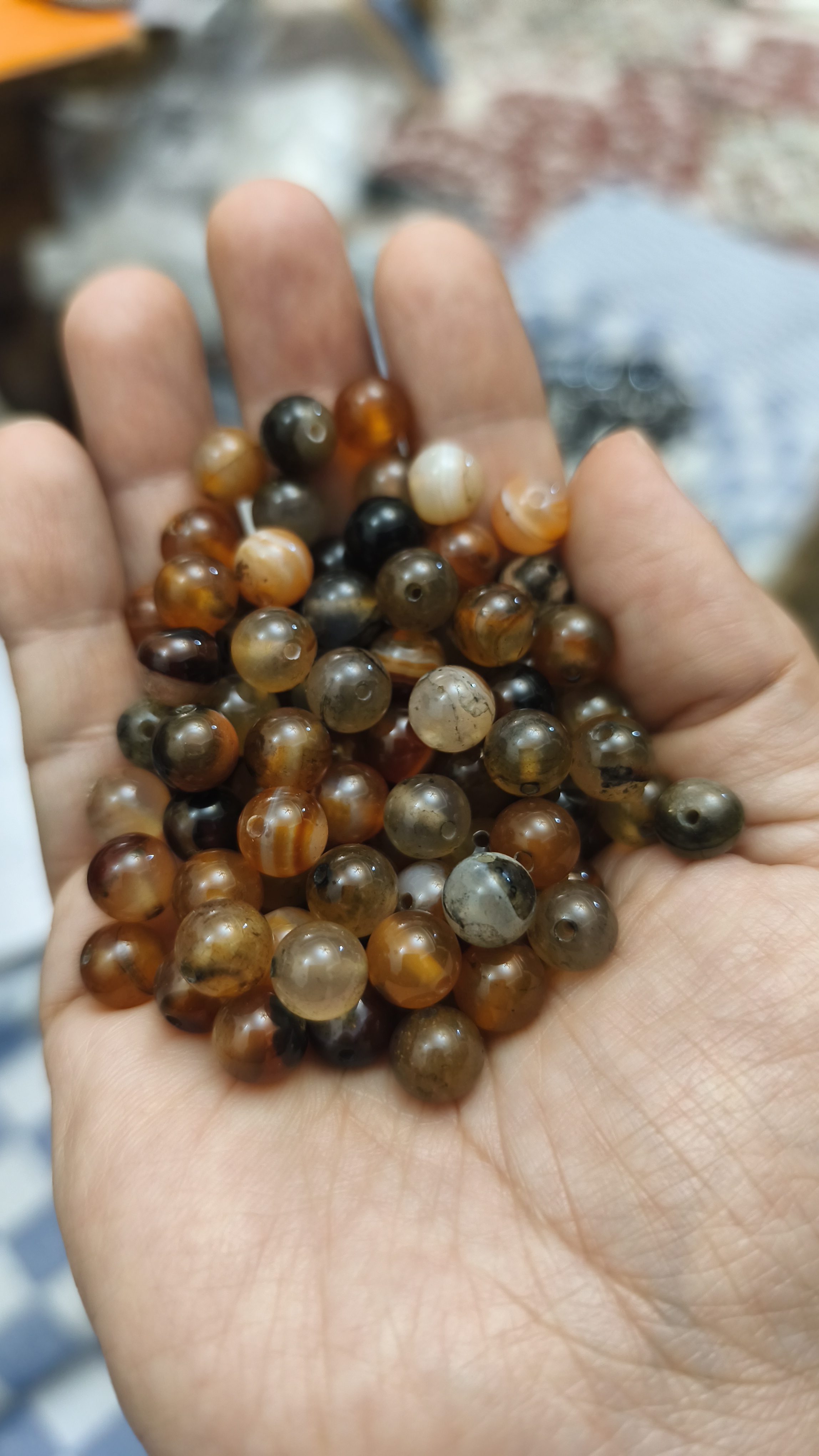 مهره سنگ عقیق سلیمانی سایز 8 سنگ اصل درجه یک گوی سنگ سوراخ دار