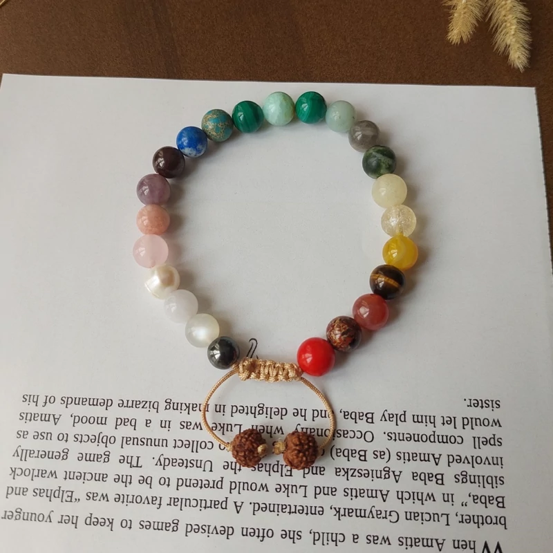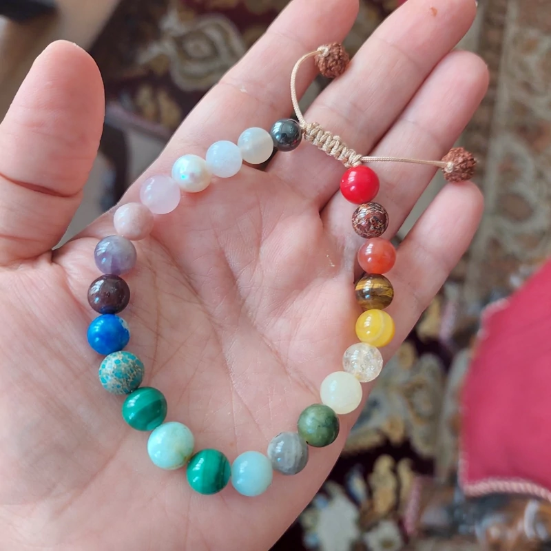 دستبند هفت چاکرا درمانی ساخته شده از سنگهای طبیعی اصل با نخ درجه یک برند دندلیون